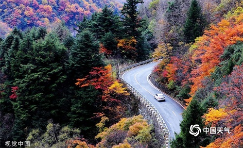 中国天气网讯 一组图带你一览祖国大美河山的春夏秋冬,每一张都是壁纸,在家也能云游祖国。图为2019年10月27日,湖北神农架,满山遍野的红叶就像一幅幅天然画卷,使人陶醉。(田宏博/视觉中国/版权图片 来源视觉中国)