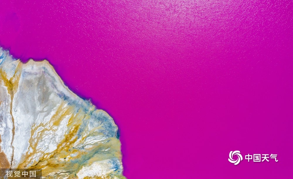 中国天气网讯 一组图带你一览祖国大美河山的春夏秋冬,每一张都是壁纸,在家也能云游祖国。图为2022年3月26日,山西运城,盐湖部分水域呈现玫瑰红。(签约供稿人/视觉中国/版权图片 来源视觉中国)