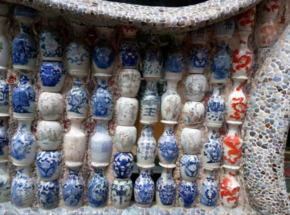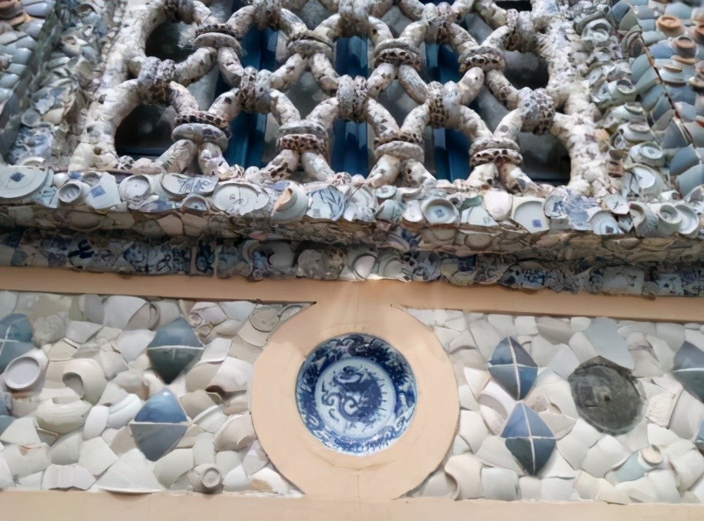 有的瓷器则比较完整,镶嵌在瓷房子的外墙上。过往的游客大多会在这些瓷器前驻足,多看一会,欣赏着中国瓷器的美,品味着中国瓷器文化的源远流长。