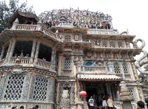 瓷房子原是一座法式洋楼,后期斥巨资改造后,成了今天的瓷房子。整体看来,瓷房子上密密麻麻的瓷器瓷片连成一体,像是给房子穿上了一件华丽的瓷衣服。瓷房子顶端,是用瓷器做出的CHINA造型。CHINA,即是中国的意思,也是瓷器的意思,这种设计,可谓做到了一语双关。