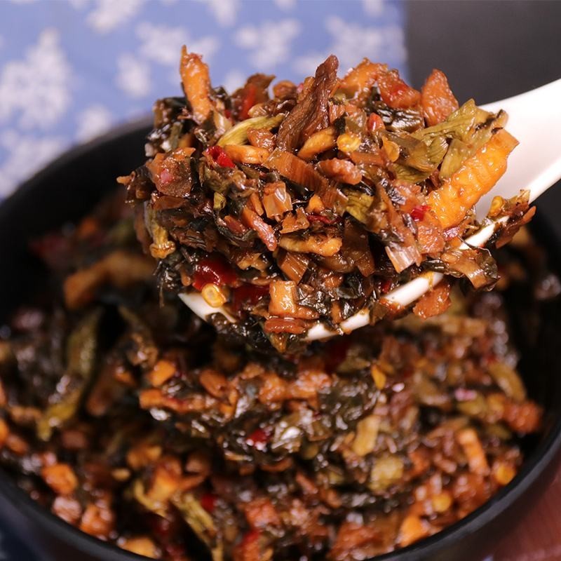 一般都是用野菜、土菜腌制而成的,加上肉泥、辣椒、植物油等,嚼之有劲,品之逾香,而且开胃下饭,据说在湘西女儿出嫁之前,母亲都会给出嫁的女儿做上一份“离家菜”,所以得名外婆菜。