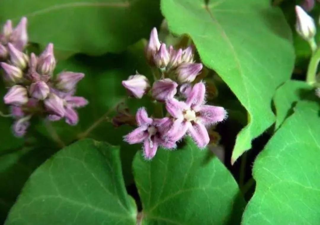 罗摩最早出现在诗经中,当时它还不叫罗摩,而是被称为皖南。如今,罗摩也有很多别名,比如叭如、婆婆的针线包、羊角等。它的叶子呈卵状心形,看起来像一颗爱心,非常可爱。罗摩喜欢攀爬到其他植物上,然后开出许多小花聚在一起,花瓣向后弯翘着,淡粉色夹杂着紫色花纹,并有细细的绒毛。虽然花很小,但散发着淡香气味。