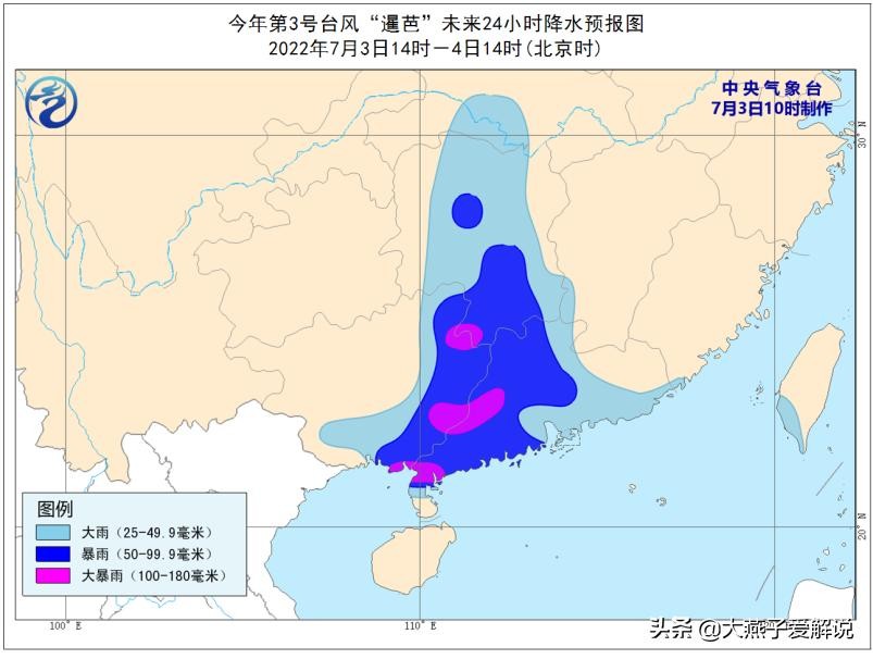 目前我国南北方雨势都比较强,北方主要降雨区位于华北一带,京津冀地区、河南北部、山东西北部等地将有大到暴雨;南方的降雨主要受台风影响,7月3日14时至4日14时,广东大部、广西东部、湖南等地有大到暴雨,其中广东西部、广西东部等地部分地区有大暴雨(100~180毫米);上述部分地区伴有短时强降水(最大小时降雨量30~60毫米,局地可超过80毫米),局地有雷暴大风等强对流天气。