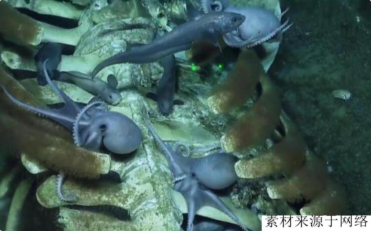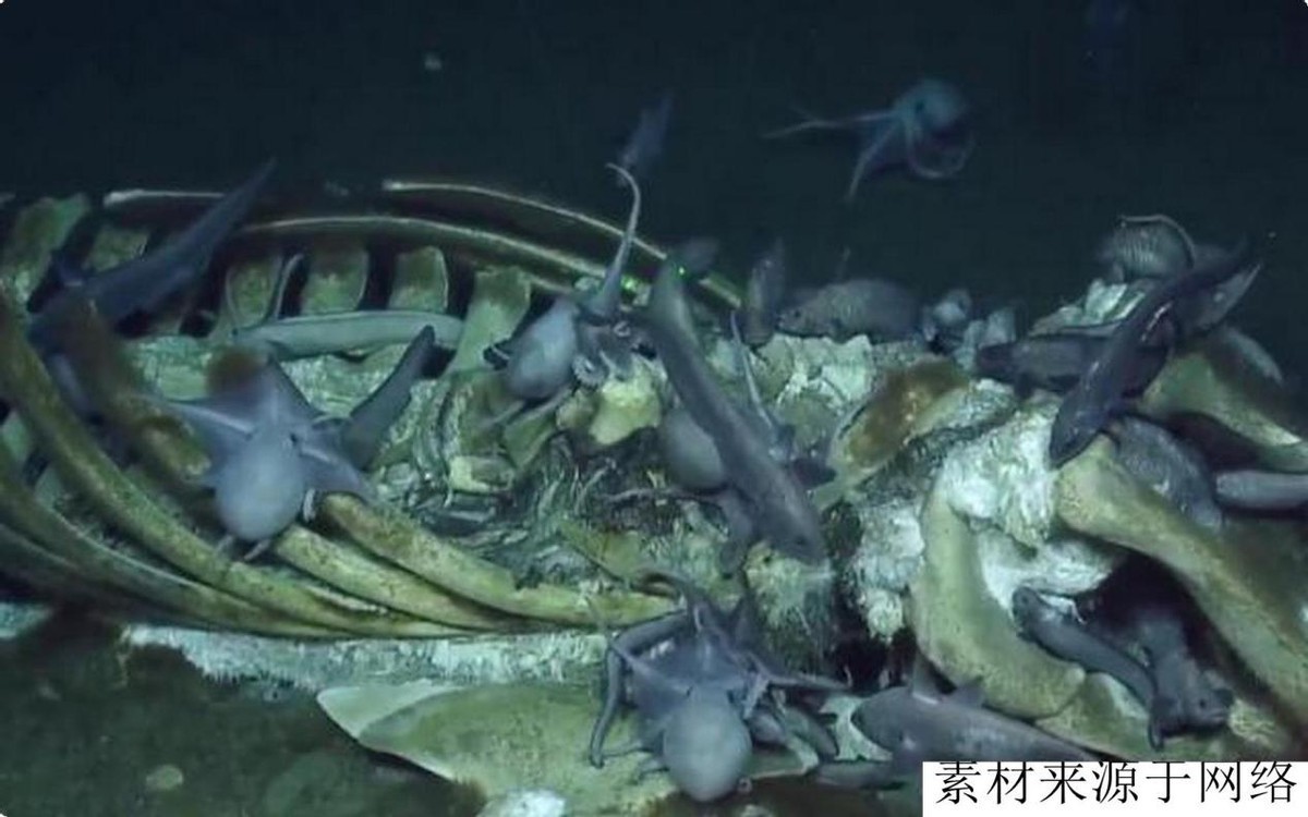 科学家拍到罕见鲸落画面:鲸尸沉至海底,章鱼、蠕虫在大快朵颐!