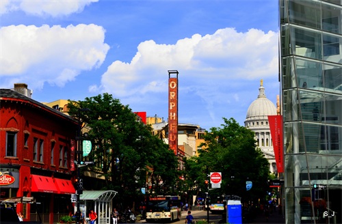 麦迪逊市(Madison)是美国是威斯康星州的首府,是威斯康星大学主校区之所在地。麦迪逊市多年来一直被评为美国最有文化、最安全、有健康意识和商业精神以及最适宜于居住的城市之一。这里从前是温尼贝戈人捕鱼、狩猎和露宿之地,这一大片具有得天独厚自然条件的宝地,经过的一个多世纪的缓慢开发和精心打造,如今已建成为一座颇具魅力的花园式城市。