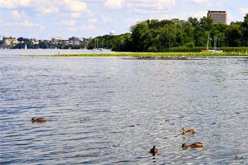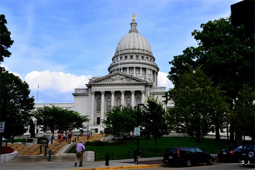麦迪逊市建市于1848年,人口二十三万,在地广人稀的中西部,算大城市了。州议会大楼和其他政府机关多位于市中心Mendota湖及Monona湖之間 的狹長陸橋上,五分钟就走完城市狭窄的两边。