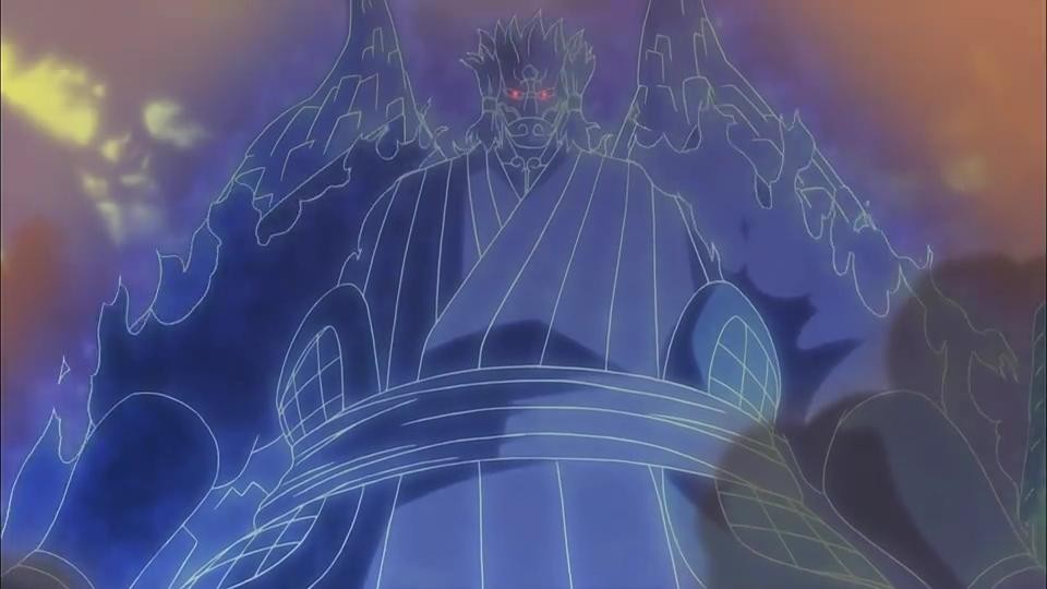 淡蓝色完全体须佐能乎须佐能乎的真正形态,需要将自身瞳力锻炼到极致,并且拥有极大的查克拉量才能使用。其大小超越山峰,呈现出武神的姿态,其战斗力足以和“尾兽”匹敌。背部的铠甲上变化出的翅膀并配备有双剑,能够翱翔于天际。完全体须佐能乎能够使使用施术者擅长的忍术,其长剑可以轻松劈开山脉、陨石。