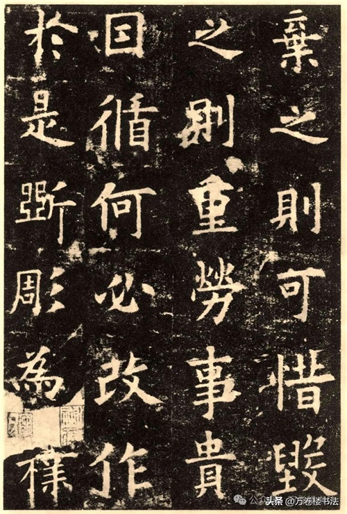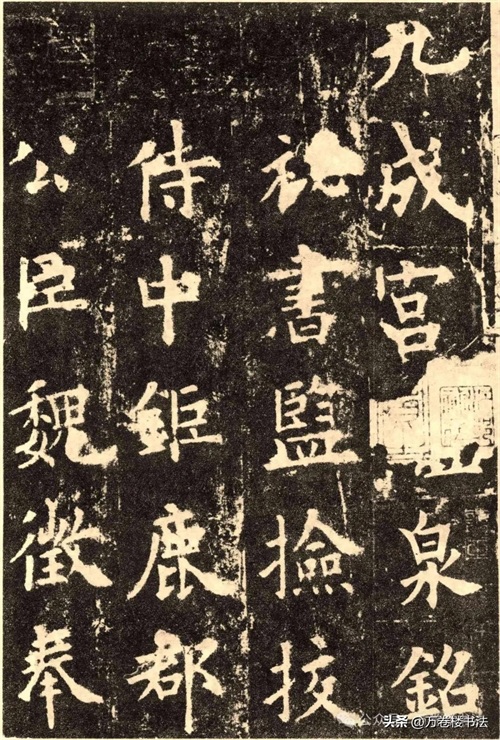 《九成宫》是由由魏征撰写铭文,欧阳询执笔写字,匠工刻于石上。每个环节都非常重要,尤其在最后一道环节,可见当时匠工技法之精湛。