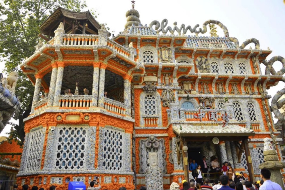 一条长768米、宽0.8米的巨型瓷龙盘旋在“瓷房子”屋顶。