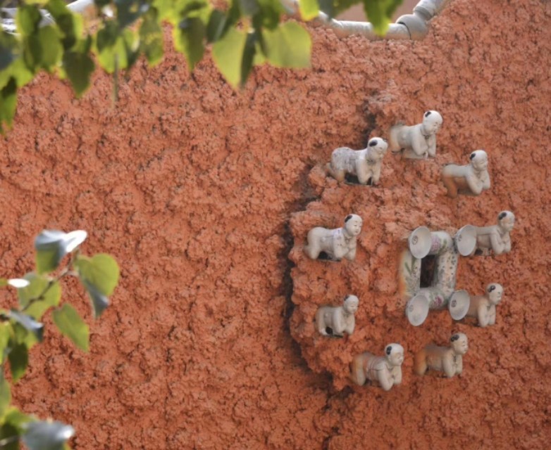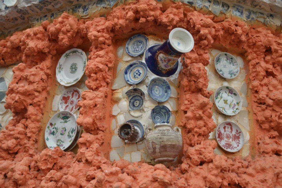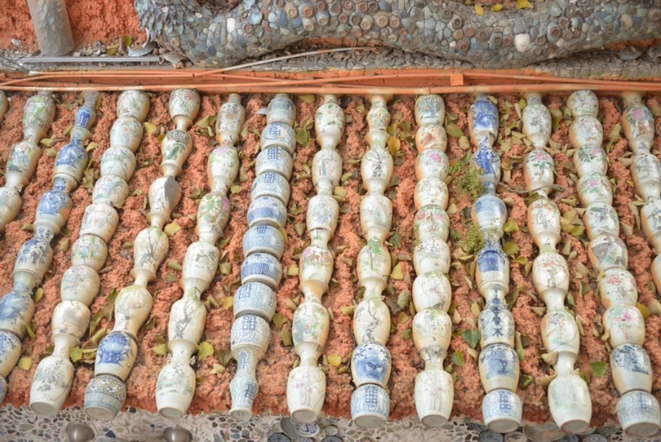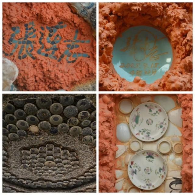 瓷房子上镶嵌的7亿多块瓷片涵盖了各个历史时期,有晋代青瓷,唐三彩,宋代钧瓷、龙泉瓷,元明青花,清代纷彩等,几乎官窑、民窑的所有门类都可以在墙上找到,而且都用水泥内部浇注,并用大理石胶粘连固定成为建筑的一部分。