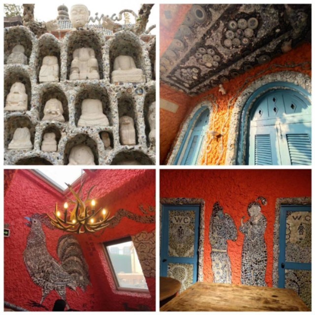 建筑结构: 瓷房子的墙面,瓷房子使用了四千多件古瓷器、四百多件汉白玉石雕、四十多吨水晶石与玛瑙,7亿多片古瓷片、13000多个古瓷盘和古瓷碗、300多个瓷猫枕、300多个汉白玉唐宋石狮子、300多尊历代石雕造像、20多吨水晶石与玛瑙。把一座法式洋楼装饰成一座价值连城的瓷房子。