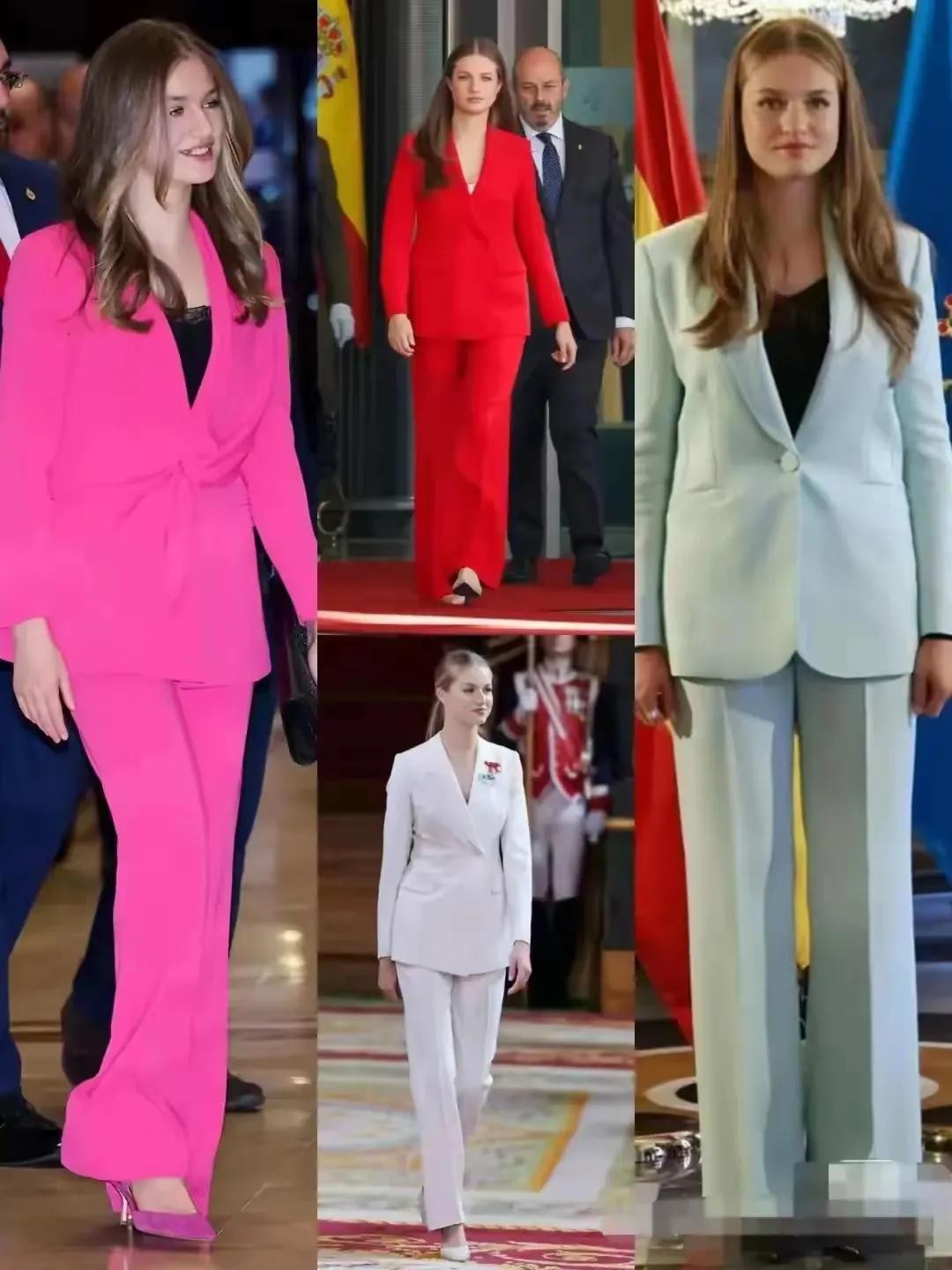当阳光洒满马德里,莱昂诺尔公主身着一袭红色西服套装,优雅地走出王宫,那一刻,仿佛时间都为她停留。2024年初,正值西班牙国王费利佩六世继位十周年庆典,莱昂诺尔公主与父母一同亮相,她的气质与风采,瞬间成为了全场焦点。网友们纷纷赞叹:“公主真是越来越有范儿了,这身红装简直美炸了!”