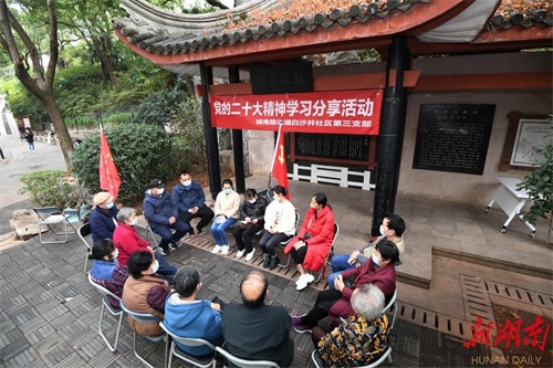 (天心区城南路街道白沙井社区第三支部在白沙古井旁开展党的二十大精神学习交流活动)