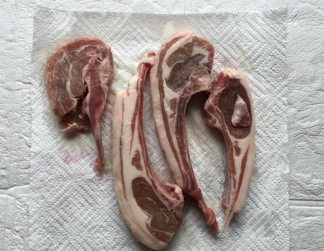 2:羊排,用清水洗2遍,然后用厨房纸巾吸干水分。