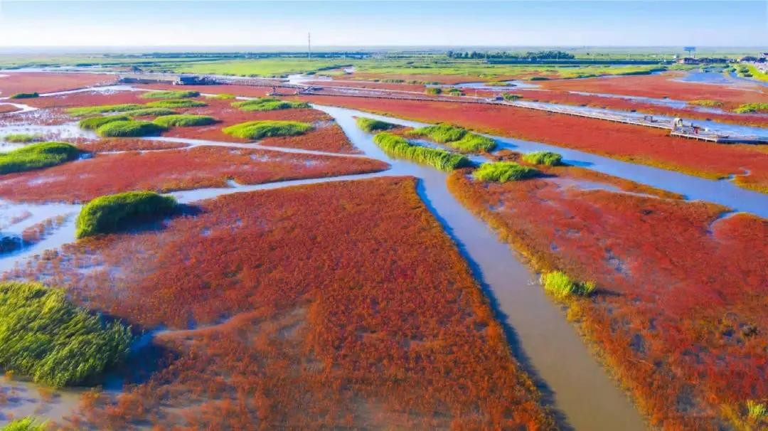 盘锦红海滩:位于辽宁省盘锦市,是世界上最大的湿地之一,以其独特的红色滩涂和丰富的生物多样性而著名。