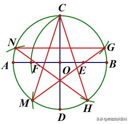 6、以C为参考依据,连接CM、CH、GN、GM、NH,这样就得到了一个五角星。