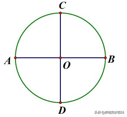 2、圆画好之后,以圆的圆心为中心,画两条垂直线,这两条垂直线标记为AB和CD。