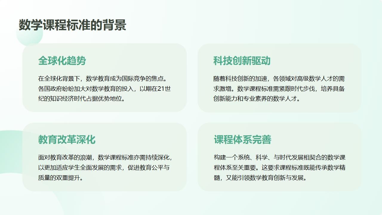 通过小学数学新课标的实施,我们期待看到更多孩子在数学学习中找到乐趣,不仅掌握必要的数学知识和技能,更能发展 出抽象思维和推理能力。让我们共同努力,为孩子们的数学学习之路点亮一盏明灯!