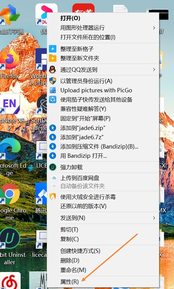 在软件上点右键,选择属性
