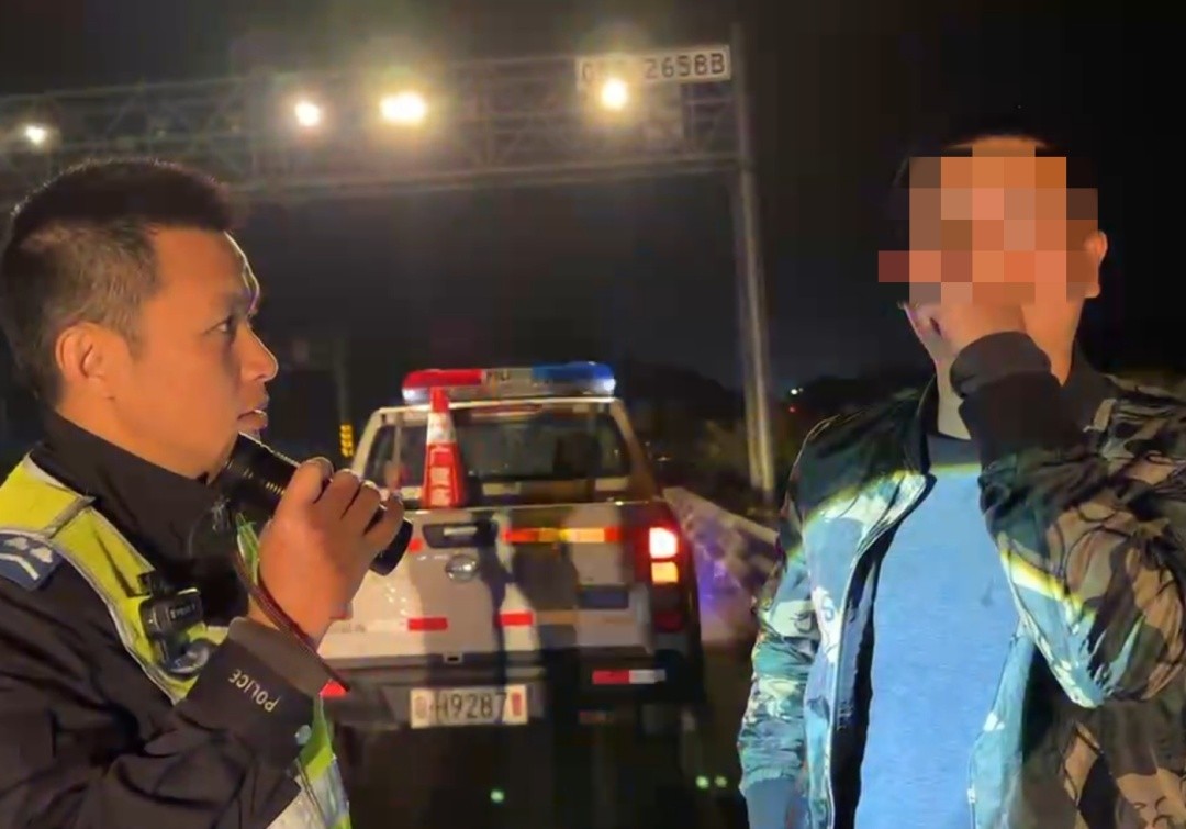 近日,交警在视频巡逻时发现一辆小车停在高速公路的慢车道上,随即调度执勤警员前往现场查看。