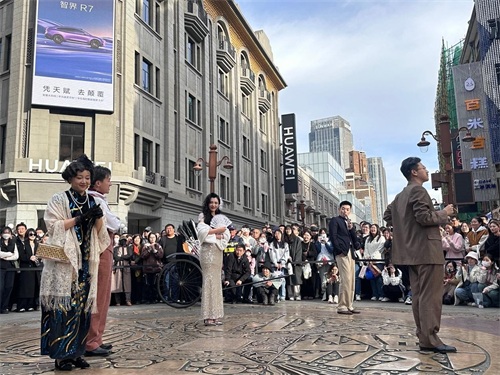 为让抵津游客切身感受到天津深厚的文化底蕴和独特的城市魅力,天津将“沉浸式戏剧”常态化,把话剧《日出》舞台搬到惠中饭店旁边、大铜钱广场上,每周六都可以在这里与剧中人物“邂逅”。“没有观众就不能称之为沉浸式,作为演员,我们需要付出百分之二百的热情,为更多的观众呈现出更好的状态,为天津文旅上大分!”“张乔治”的扮演者何子雨真挚地说道。