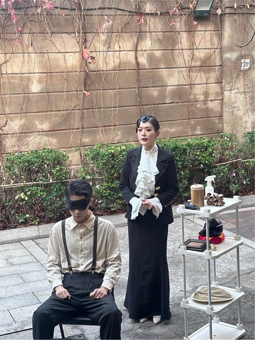 “四爷,来跟这边的朋友打个招呼吧!”在这露天式大剧场上,“张乔治”与“潘四爷”招呼着观演群众,不一会儿,“小东西”“顾八奶奶”“胡四”等角色悉数亮相,“陈白露”小姐也搭乘着黄包车款款而来,仿佛瞬间穿越回19世纪30年代的大天津。“这是一个全新的挑战,与在剧场里演出不同,这里旁边就是《日出》的故事背景地—惠中饭店,在这里,我们能与角色产生强链接,更加有代入感;同时,与观众的近距离接触,也让互动更加亲密、反馈更加及时。”“王福升”的扮演者甘弘扬表示道。