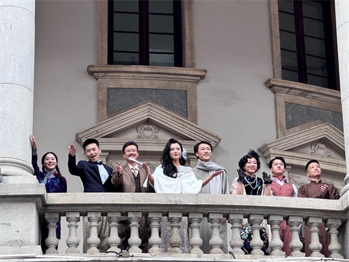 在大铜钱广场上表演的青年演员们