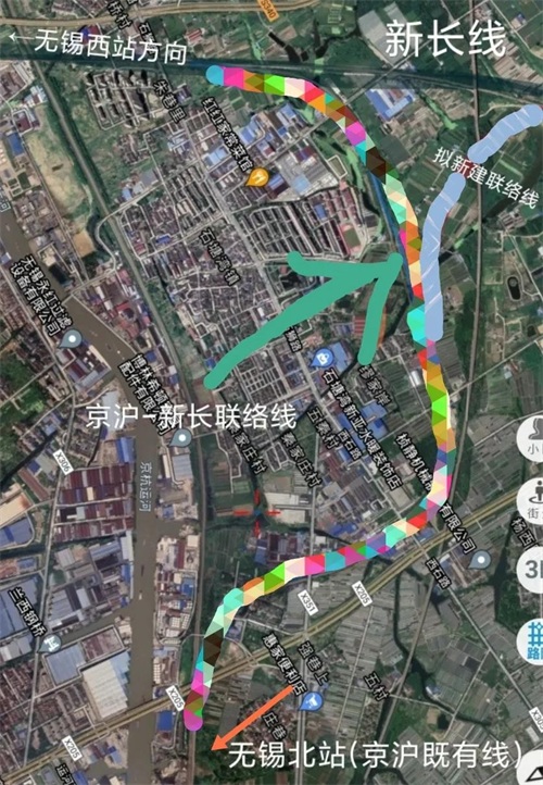 解决以上两点,只能让新长铁路“复苏”,但要想让新长铁路发挥最大效应,本小编认为在无锡建联络线,让新长铁路接入京沪铁路,列车进入无锡北站。如下图