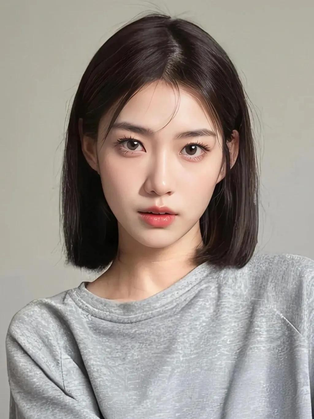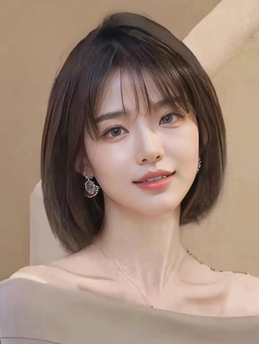 第四款:外翻齐肩发!很多人不喜欢外翻,其实外翻的也很修饰脸型的,因为外翻的上弧线刚好是向内的,就贴合了脸颊!是比较大气的发型!