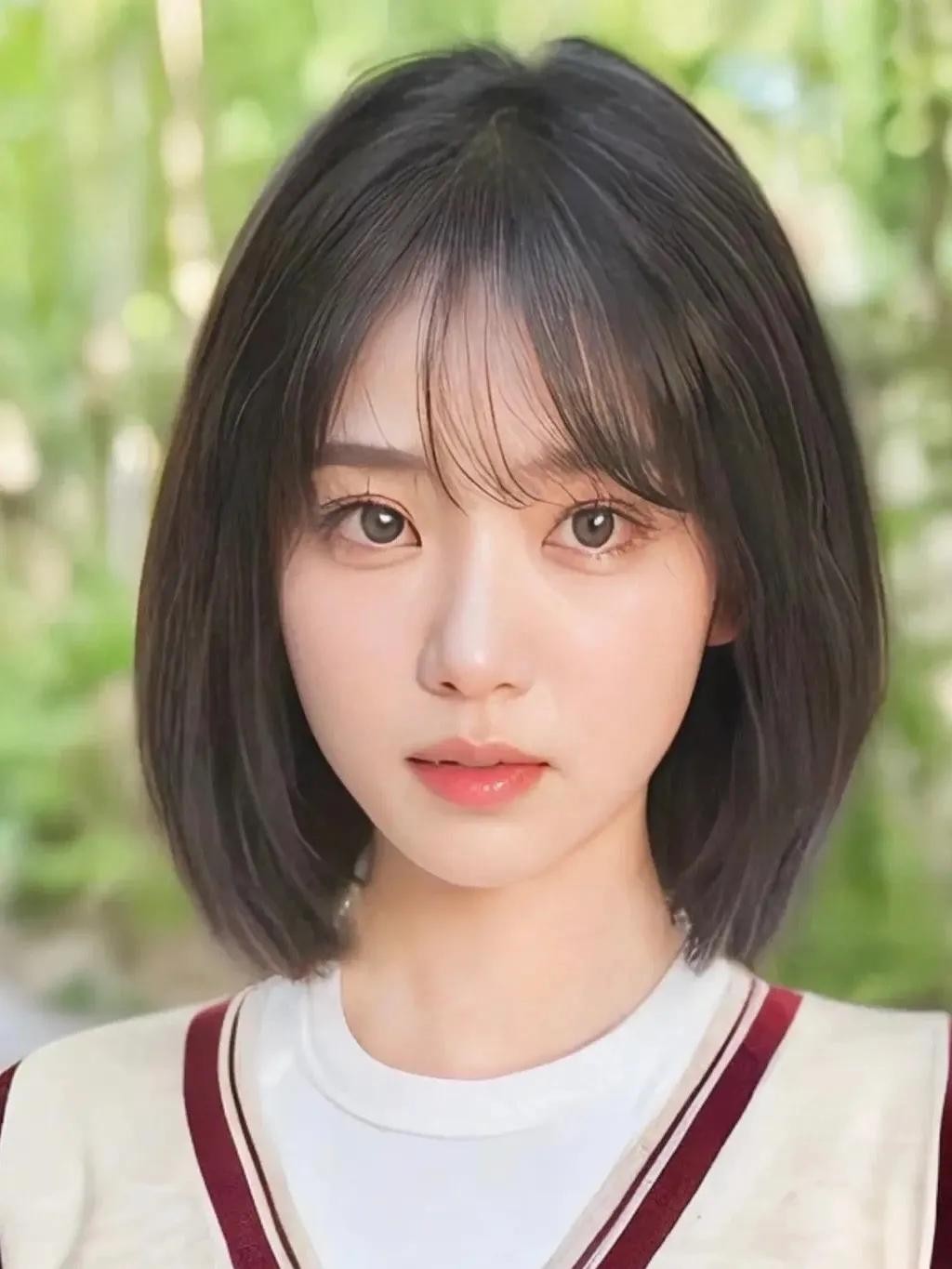 第二款:经典的锁骨发搭配空气刘海。发际线过高,或者发际线不太好看的妹妹大胆尝试,空气刘海可以完美解决发际线问题,同时又超级减龄。非常适合发量不是太多的妹妹!
