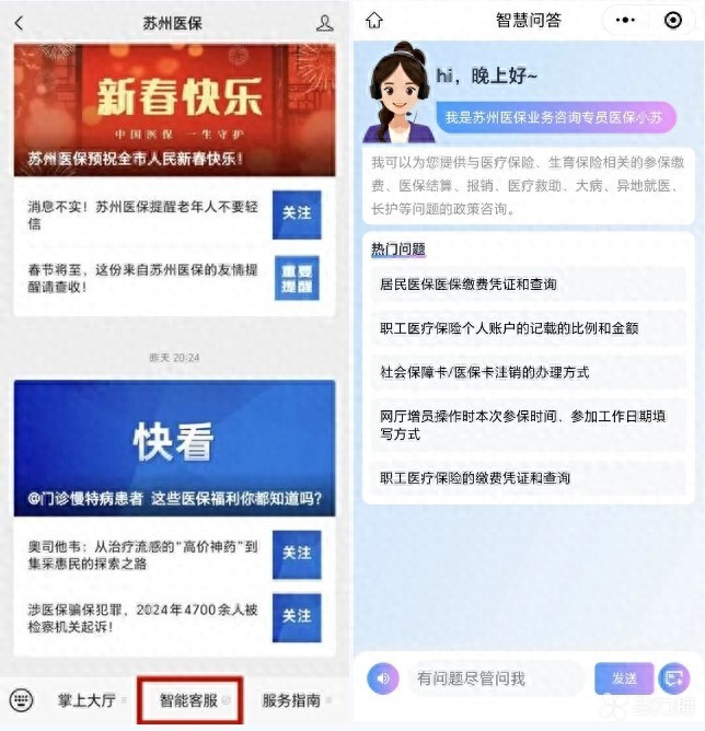 实时答疑相关政策问题 苏州医保微信上线智能客服