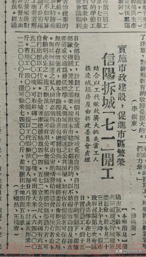 信阳市解放后于1950年,政府又组织人力拆除了城墙,下图是当年的报纸报道。