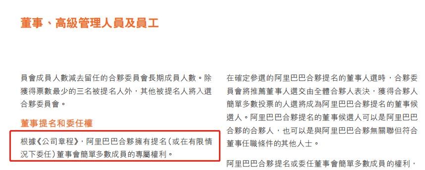 一般来说,提名董事的人选数量是有持股比例多少来分配的,持有股份越多则在董事会拥有的董事人数越多。不过阿里巴巴的公司章程规定,阿里合伙拥有提名董事会简单多数成员的专项权利。
