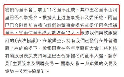 3.其实基本不会发生阿里合伙提名的董事不被股东大会同意的情况。因为阿里巴巴和第一大股东软银集团签订了协议。软银持有的股份对应的一切表决权由阿里合伙代为行使。换言之,大股东拥有的24.9%股份对应的表决权由阿里合伙掌控。