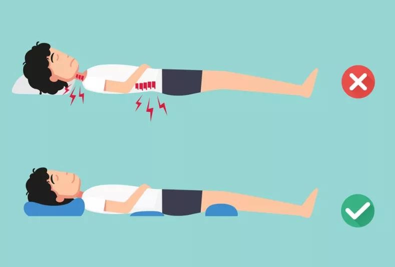 平躺时,记得给膝盖(腰)下面垫个枕头,能维持腰椎的生理性前凸。