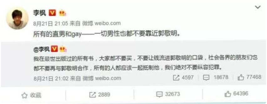 一位叫做李枫的人在网上发表了一片叫《关于郭敬明,至所有人》,