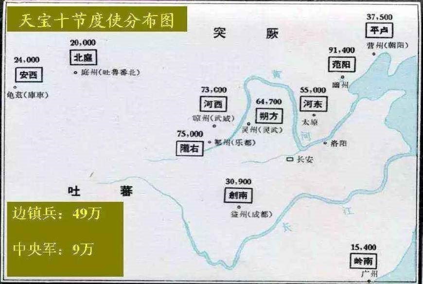 怛罗斯之战前,唐朝各藩镇兵力分布图