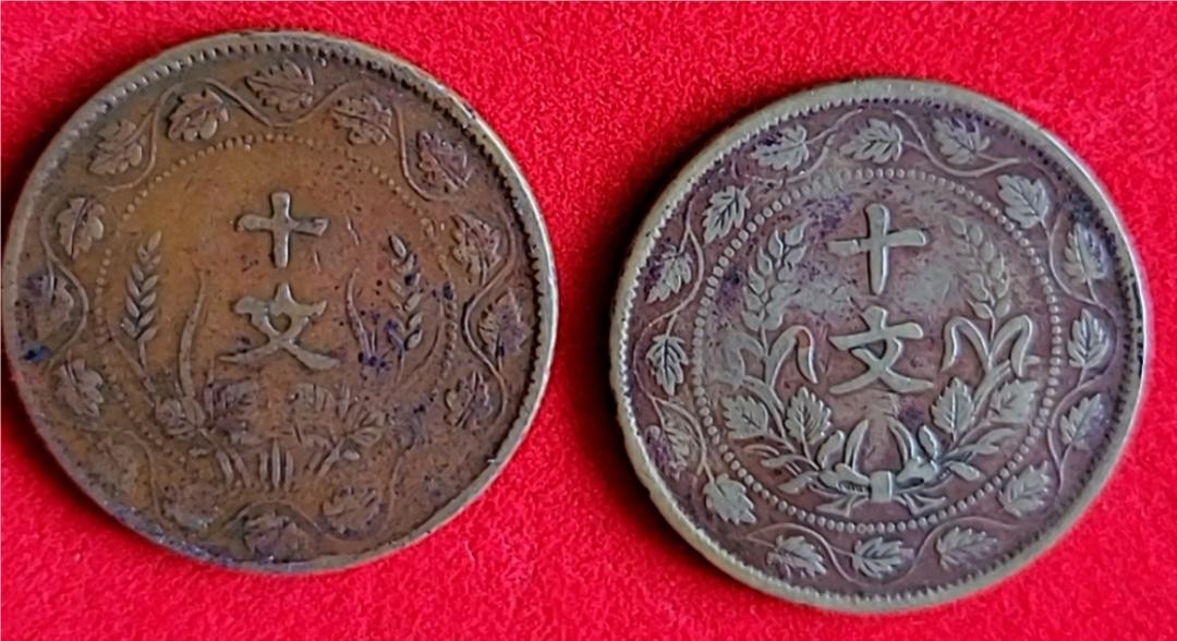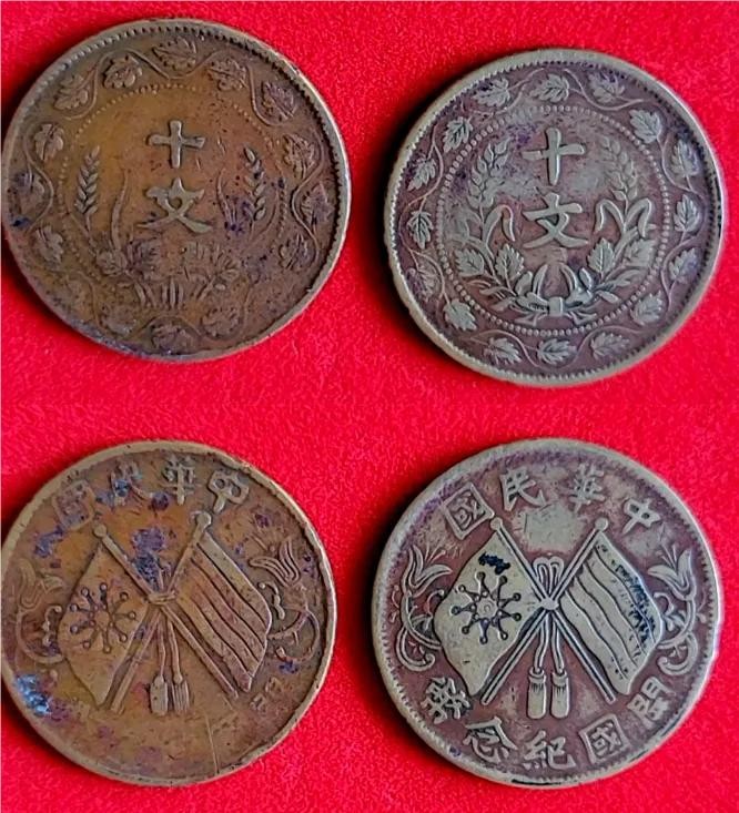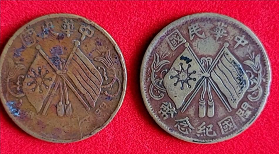 意义非凡的家族宝物:两枚民国双旗开国纪念币十文(连叶纹版)