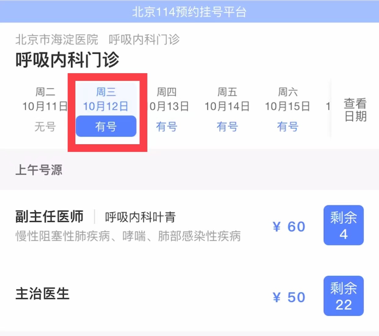 “无号”表示当日无号源,不能挂号。“有号”表示当日可挂号。“即将放号”表示还未放号,可根据时间提示,等待挂号。还可以通过查看日期选择挂号。