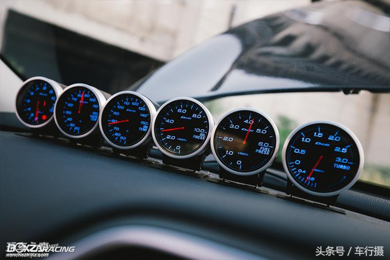内饰方面,车主 并没有作过多的改装而是在中控上加上Defi仪表