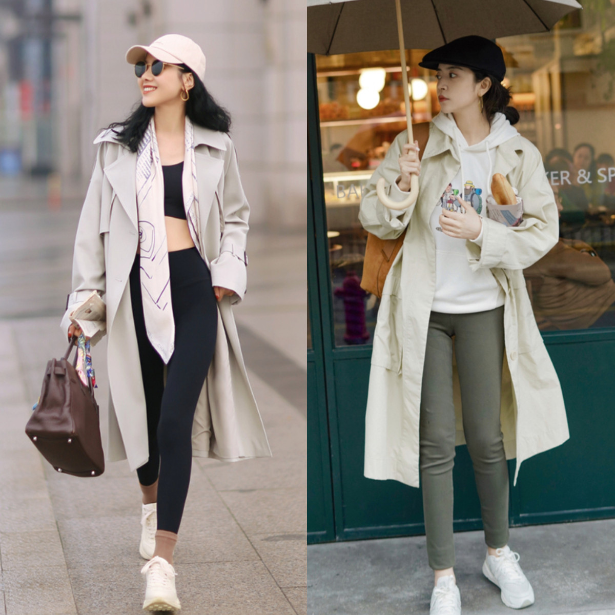 风衣最开始属于“功能性”单品,但随着时尚圈的发展,风衣逐渐占领了一席之地,上身后潇洒又拉风,风格感极强。用风衣和瑜伽裤搭配,既能将身材大面积包裹,又能打造“松紧反差”,不怕穿不出显瘦效果!