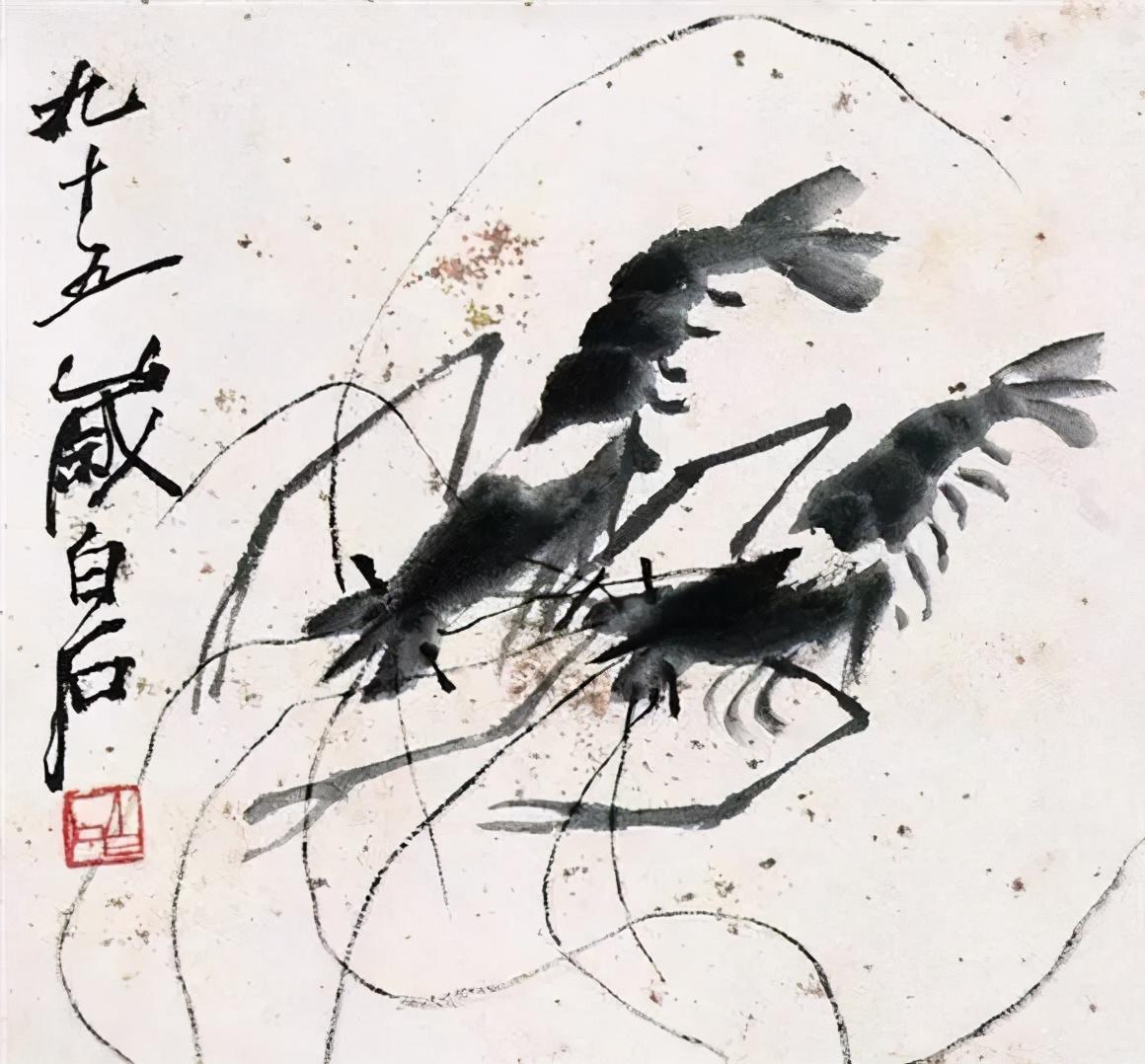 齐白石的水墨虾