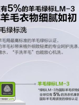 羊毛这种娇贵的衣服标绿通常都要手洗,这种认证过的洗衣机就能随便洗羊毛衣服那可标绿正是懒人福音。