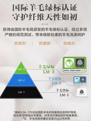 这个毡化程度CSF就是和一种标准洗衣机对衣服比出来,只要比他强,瑟俪绿标是斯尔丽品牌吗,那就能衣服拿到基础的羊毛黑标认证瑟俪。而这个作为对比的洗衣机通常就是千元价位的洗衣机。