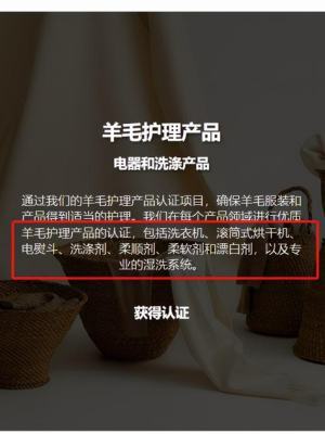 再说回羊毛绿标,这个认证不仅仅是想贴给洗衣机,只要是能和羊毛扯上一点关系的,这个“澳大利亚包装国际羊毛局”都想给贴个标,什么洗衣机、洗衣液甚至连电熨斗洗衣机都要贴个标。
