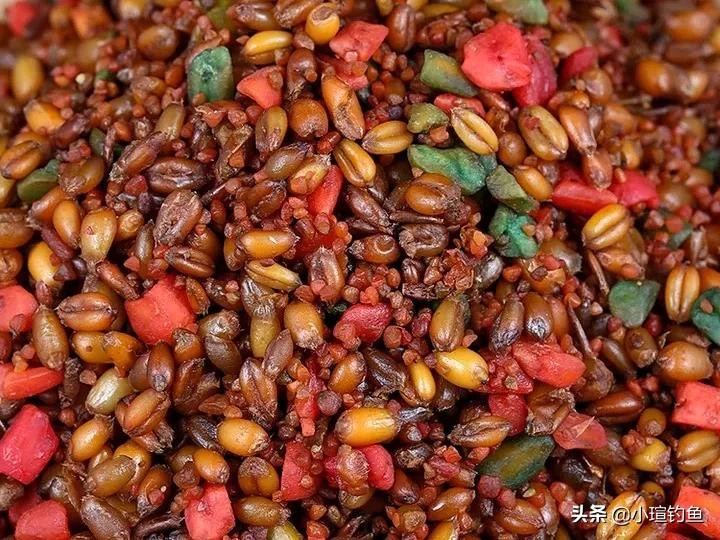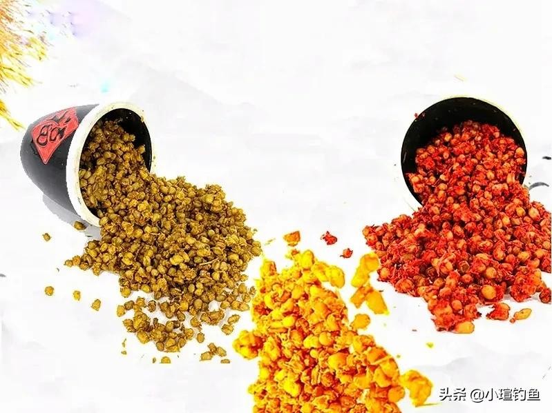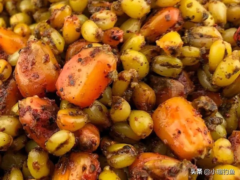 其次我们在制作窝料的时候也要软硬兼施。比如我们在配置针对草鱼的玉米窝料时,可以在玉米的外面散上一层麦麸或者米糠进行同步发酵。这样做出来的窝料,麦麸在水中能迅速散开诱鱼,玉米则不会雾化,能持久留鱼。