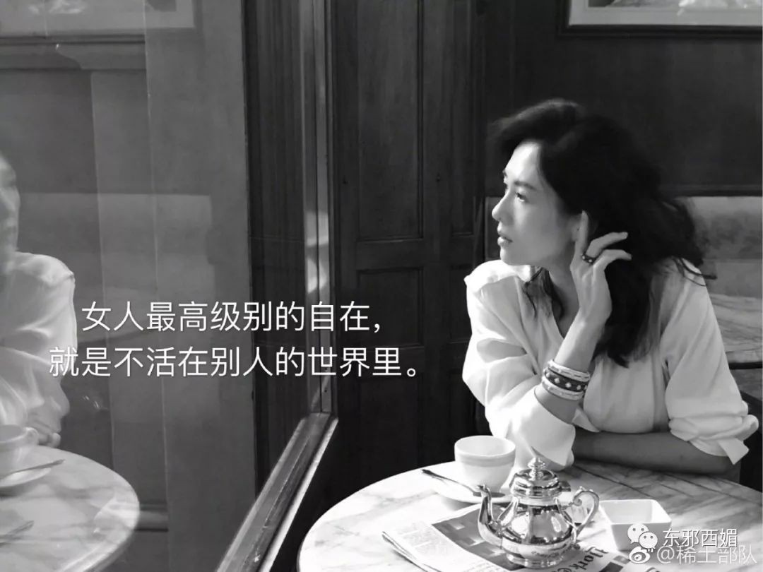 章子怡微博上曾发过这样一张图:女人最高级别的自在,就是不活在别人的世界里。