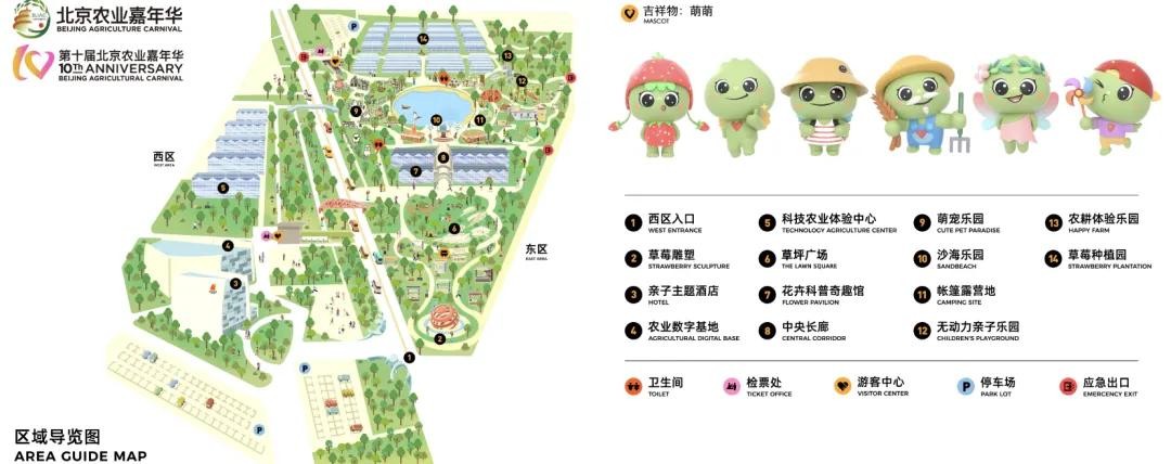 2024第十届北京农业嘉年华正是以草莓博览园为核心,着力辐射昌金路农文旅休闲观光带,通过联动区内多个园区、景区、商圈,带动昌平全域旅游发展,形成“一带一主三分”和“两区三馆七项”的活动规划格局。其中,“一带一主三分”是指充分利用昌金路农文旅休闲观光带的田园风貌和乡村资源,设置一个草莓博览园主会场和包括小汤山农业园、兴寿镇辛庄村、崔村镇千亩双高智慧农场在内的三个分会场;“两区三馆七项”是指嘉年华横跨草莓博览园东、西两区,主要活动展示在A馆、B馆、C馆及园区户外,策划有七项主题活动。