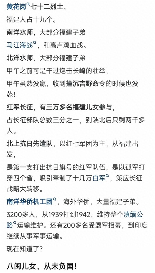 综上所述,关于福建人“不善战”的说法显然是一种误解,它忽略了福建人民在不同历史阶段展现出的英勇与牺牲。从革命战争年代的红34师,到抗日战争中的海防战士,再到和平建设时期,福建人民以其特有的坚韧与智慧,为国家的独立、民族的解放以及后来的经济发展做出了不可磨灭的贡献。