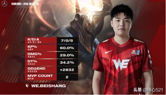 纵观整场比赛,悲伤表现尤为亮眼,中前后期节奏无敌,7杀0死的数据在职业赛场更是夸张。香克斯发条顶住Rookie招牌辛德拉,小龙团拉出完美大招,为WE胜利奠定基础。Missing和旧梦虽然炸线,但敢打敢拼尤为可贵。新人Breathe对线TheShy彰显稳健。